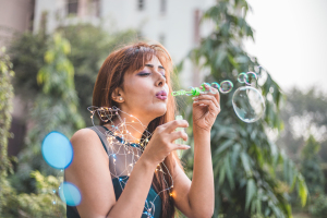 It is divine. It is the world of magic. The world of dreams which is her reality as sparkling as these fairy lights and as pure as her smile and the innocence in these soap bubbles and the flare of the pink.